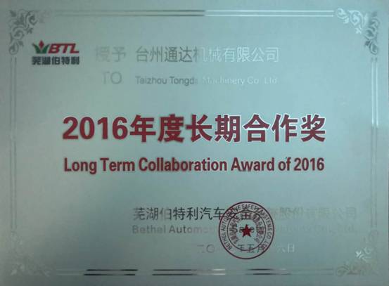 蕪湖伯特利長(zhǎng)期合作獎(jiǎng)